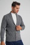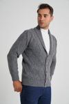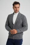 Erkek Koyu Gri Yürütme Baklava Desenli Şal Yaka Düğmeli Yün Hırka TRIST-5359