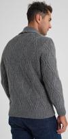 Trist Star Erkek Koyu Gri Yürütme Baklava Desenli Şal Yaka Düğmeli Yün Hırka TRIST-5359