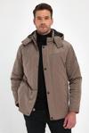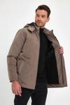 Sivaist Erkek Krem Standart Fit Normal Kesim Çıkmalı Kapüşon Dik Yaka Mont