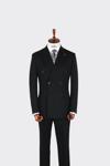 Siyah Düz Modern Fit Yün Karışımlı Takım Elbise - Image 1