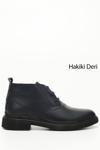 * Gön Hakiki Deri Yuvarlak Burun Kauçuk Taban Bağcıklı Günlük Erkek Bot
