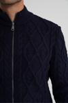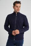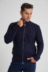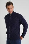 Erkek Lacivert Cepli Fermuarlı Yürütme Saç Örgülü Yün Hırka TRIST-5355