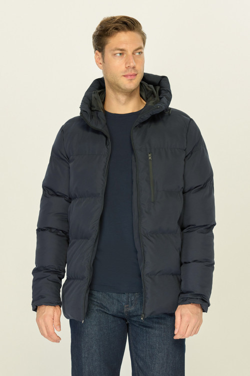 Erkek Lacivert Kapüşonlu Su Ve Rüzgar Geçirmez Şişme Kışlık Mont.