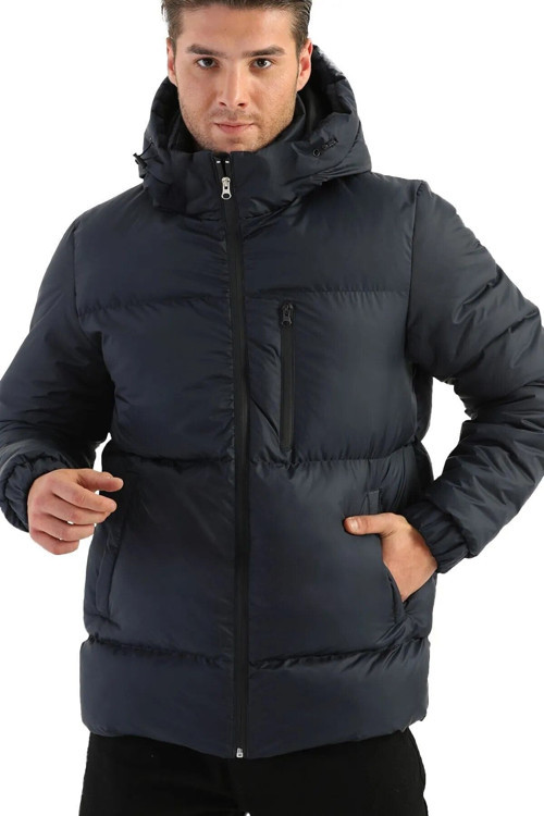 Erkek Lacivert İçi Çıkarılabilir Kapüşonlu Su Ve Rüzgar Geçirmez Şişme Kışlık Spor Mont.