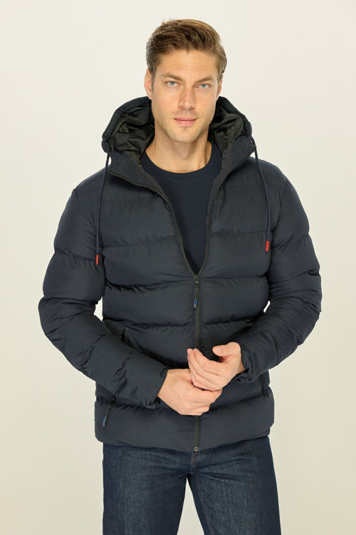 Erkek Lacivert Kalın Astarlı Rüzgar Geçirmez Spor Kışlık şişme Mont | 3xl