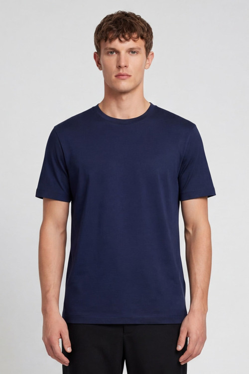 Erkek Lacivert Modern Fit %100 Pamuk Basic T-Shirt
