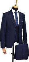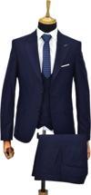 Erkek Lacivert Silim Fitt Yelekli Takım Elbise
