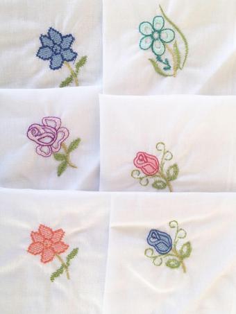 Çiçek İşlemeli 6 lı Bayan Beyaz Mendili 28x28 cm 100 Pamuk Beyaz