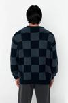 Ürün Özellikleri: Oversize kalıp, akrilik ve polyester materyal, ekose desen, bisiklet yaka, standart kol, triko kumaş, lacivert renk.