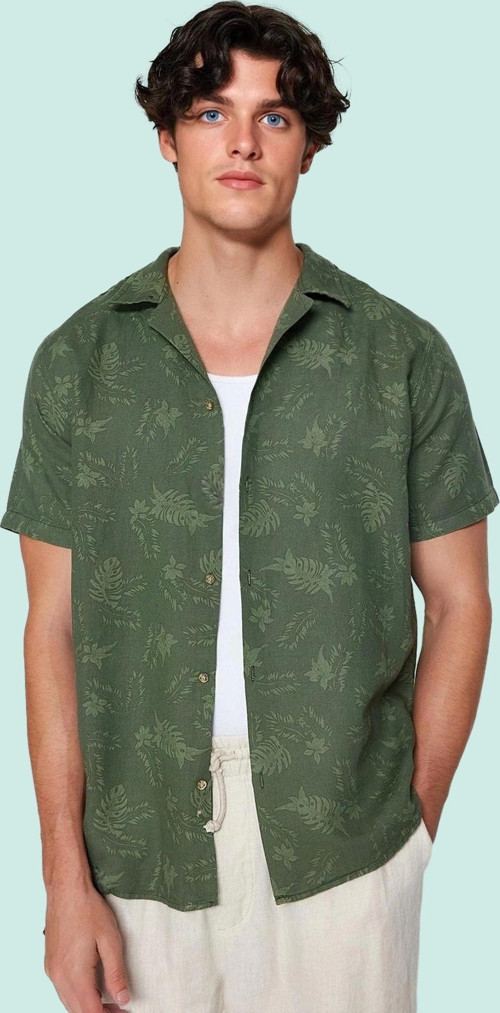 Sıcak yaz günlerinde tarzınızdan ödün vermeden rahatlığı yakalayın! Bu %100 pamuklu haki desenli gömlek, nefes alabilen yapısıyla gün boyu konfor sunuyor. Apaş yakası ve rahat kesimiyle modern ve şık bir görünüm yaratırken, kısa kolları ve tropikal deseniyle yazın enerjisini yansıtıyor. Regular fit kalıbıyla vücuda tam otururken, hareket özgürlüğünüzü de kısıtlamıyor. Düğmeli tasarımıyla pratik kullanım sağlıyor.