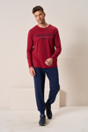 Rahatlığın ve tarzın bir araya geldiği Erkek Bordo Uzun Kollu Baskılı Pijama Takımı, evde geçirdiğiniz zamanlara konfor katmak için tasarlandı.