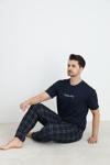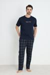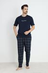 Erkek Pijama Takımı Kısa Kol Ekose %100 Pamuklu Cotton