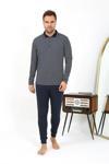 Erkek Polo Yaka Uzun Kol Penye Pijama Takımı Lacivert