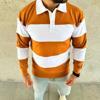 Erkek Polo Yaka Uzun Kollu Çizgili Sweatshirt Trend Rugby Stil - Turuncu