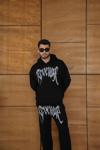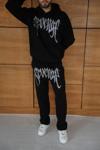 Mzp Kartan Erkek Premium Taş Baskılı Eşofman Takım Revenge Model (Siyah) Kapüşonlu Üst + Taşlı Baskılı Alt Mode