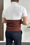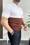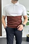 Erkek Renk Bloklu Polo Yaka Yarım Fermuarlı Tişört Kiremit Edw234