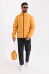 Riverclup Erkek Rüzgar Geçirmez Taşınabilir Çantalı Sıcak Tutan Elyaf Dolgulu Hafif Şişme Sarı Mont | XL