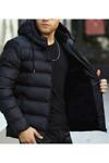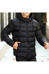 Erkek Siyah Su Ve Rüzgar Geçirmez Kapüşonlu Kışlık Şişme Spor Mont.