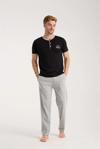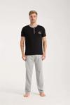 Çamaşır Kenti'nin erkek siyah düğmeli yaka kısa kol pijama takımı, şıklığı ve rahatlığı bir arada sunuyor.