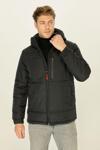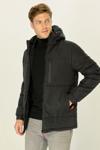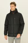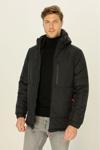 Erkek Siyah Kapüşonlu Su Ve Rüzgar Geçirmez Şişme Kışlık Mont.