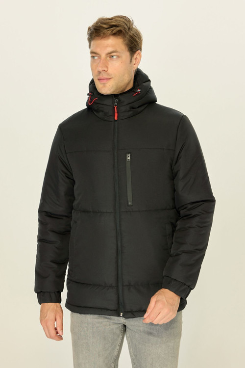 Erkek Siyah İçi Çıkarılabilir Kapüşonlu Su Ve Rüzgar Geçirmez Şişme Kışlık Mont.
