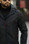 Erkek Siyah Içi Astarlı Rüzgar Geçirmez Kapüşonlu Cepli Mont
