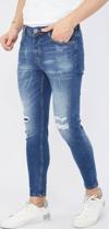 Erkek Skinny Fit Yırtık Detaylı Jean Koyu Mavi