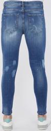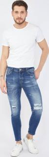 Blue White Erkek Skinny Fit Yırtık Detaylı Jean Koyu Mavi