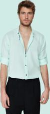 Erkek Slim Fit Uzun Kollu Gömlek Pamuklu Casual Günlük Hafta Sonu Yaz Aylarının Vazgeçilmezi