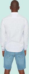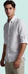 Bu gömlek, %100 pamuktan üretilmiştir ve yüksek kalite standartlarını karşılamaktadır. Keten görünümlü dokusu, gömlek yakası ve standart kollu tasarımı, klasik ve modern tarzı bir araya getiriyor. Vücut hatlarınıza uyum sağlayan slim fit kalıbı, rahat bir kullanım sunar. Cepsiz tasarımı minimalist bir görünüm sağlarken, beyaz rengi her kombinle uyumlu bir seçimdir.