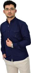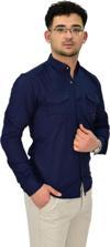 Ersefa Moda Erkek Gömlek Yaka Düz Desen Günlük Mavi Unisex Regular Fit %100 Pamuk Keten Görünümlü Gömlek