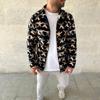 Erkek Tam Fermuarlı Desenli Polar Sweat – Siyah Multicolor Figür Desen Yakalı, Uzun Kollu, Oversize
