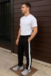 Mzp Kartan Erkek Üç İplik Kışlık Pamuklu Yandan Garneli Kalın Şeritli Cepli Eşofman Altı - Siyah