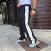 Erkek Üç İplik Kışlık Pamuklu Yandan Garneli Kalın Şeritli Cepli Eşofman Altı - Siyah