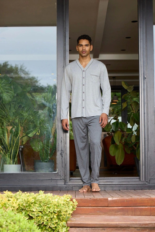 Erkek V Yaka Boydan Düğmeli Pijama Takımı