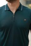 Erkek Yaka Ve Kolları çizgi Detaylı Fermuar Yakalı Kısa Kollu Tişört