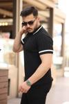 Erkek Yaka Ve Kolları çizgi Detaylı Fermuarlı Kısa Kollu T-shirt