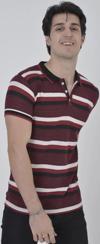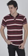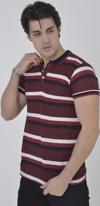 Moda Erkek Yakalı Slim Fit Dokuma Çizgili T-Shirt - Bordo