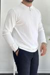 Erkek Yarım Fermuarlı Polo Yaka Mevsimlik Kazak Beyaz Edw195