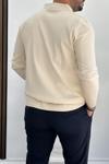 Erkek Yarım Fermuarlı Polo Yaka Mevsimlik Kazak Krem Edw195