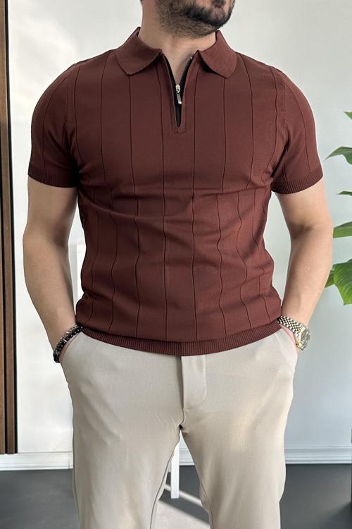 Erkek Yarım Fermuarlı Polo Yaka Tişört Kiremit Edw257