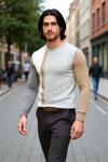PayBuy Erkekler İçin Fitted Kalıp Bisiklet Yaka Renk Bloklu Uzun Kollu Basic Dokulu Triko Kazak Kaliteli