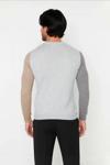 Ürün Özellikleri: Fitted kalıp, akrilik ve pamuk karışımı materyal, renk bloklu desen, bisiklet yaka, standart kol, triko kumaş, gri renk, baskısız tasarım.