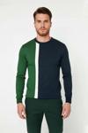 PayBuy Erkekler İçin Fitted Kalıp Bisiklet Yaka Renk Bloklu Uzun Kollu Basic Dokulu Triko Kazak Kaliteli