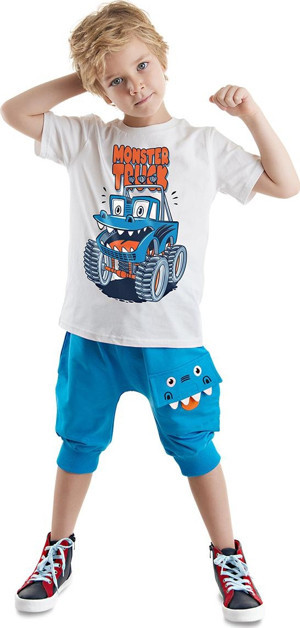Monster Truck Erkek Çocuk Yazlık T-shirt Kapri Şort Takım