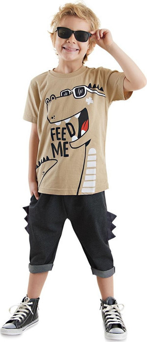 Komik Dino Erkek Çocuk Yazlık T-shirt Kapri Şort Takım