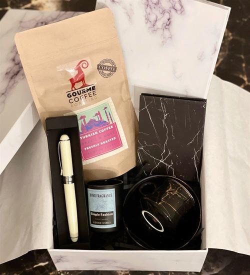 Bu Premium set mermer tasarım kutu içerisinde kraft kağıt,