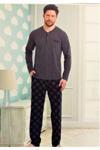 Baklava deseniyle modern ve şık bir görünüm sunan mevsimlik erkek pijama takımı, evde şıklığı yakalamak isteyenler için idealdir.