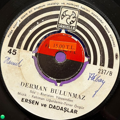B Yüzü: Derman Bulunmaz (Söz: Sivrialan Yöresinden - Müzik: Fehiman Uğurdemir / Taner Öngür)