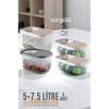 Bu sürgülü kapaklı saklama kabı seti, şeffaf plastik tasarımı ve pratik sürgülü kapak mekanizması ile gıdaları ve ev eşyalarını düzenli şekilde saklamanıza olanak tanır. Farklı boyutlarda tasarlanmış dört adet saklama kabı, 5 litre ve 7.5 litre kapasiteye sahiptir.